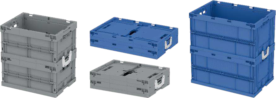 Le bac de 600x400x220 mm propose un volume de 39 litres et répond parfaitement aux besoins standards de la logistique. Le bac de 600x400x320 mm, avec sa capacité de 59 litres, constitue la solution idéale pour le transport et le stockage de volumes plus importants. Ces 3 types de bacs pliables sont également prévus avec des fonds renforcés pour supporter des charges plus lourdes et pour une circulation sur des convoyeurs rapides.
